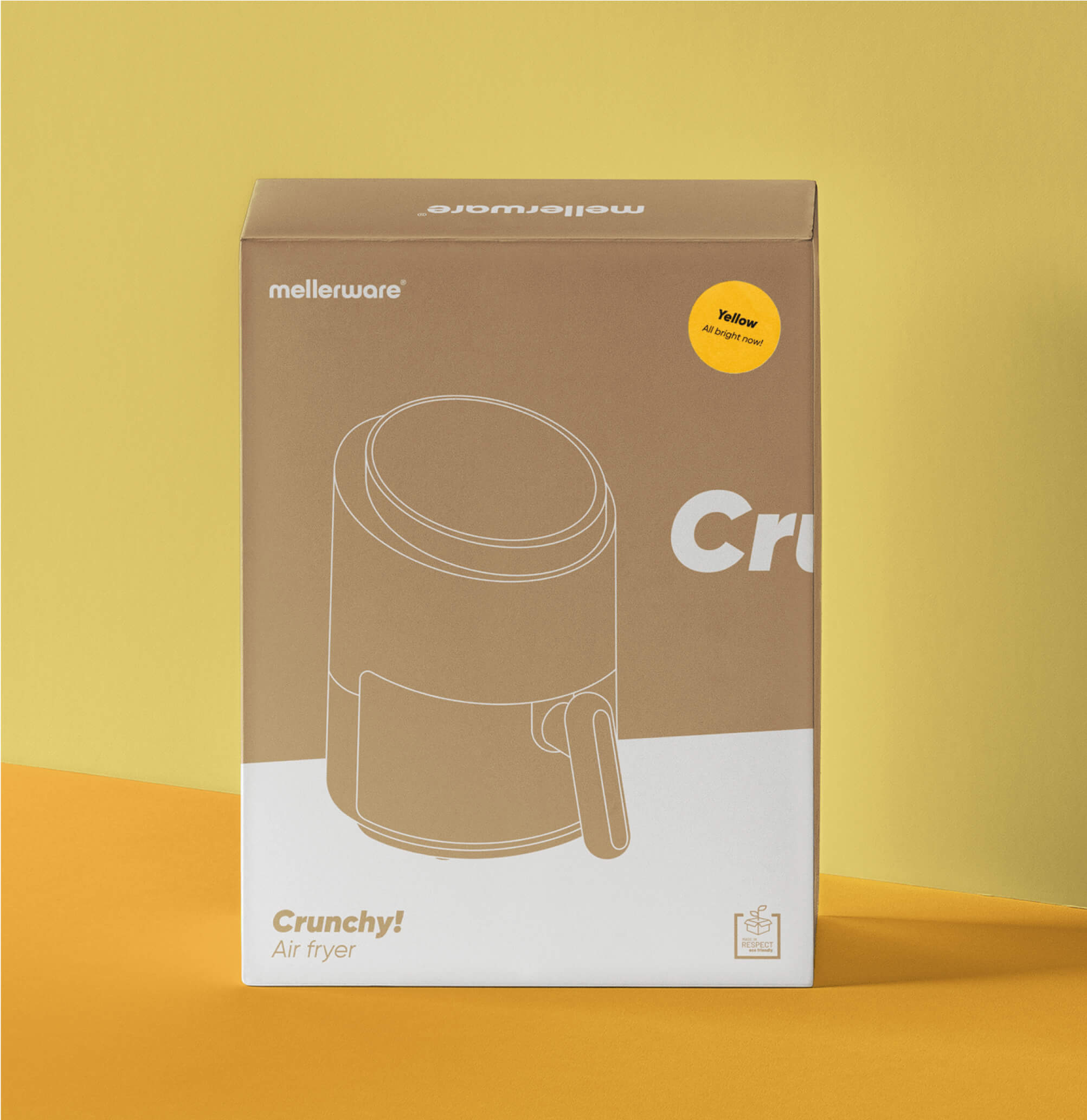 En algunas decisiones, nuestro margen de actuación era más limitado, ya que la marca estaba funcionando y el stock conviviría con los nuevos productos, igual que el packaging. Así, realizamos ajustes para actualizar el logo de Mellerware, haciéndolo más digital y cercano, y creamos un isotipo para redes con la M y W superpuestas.